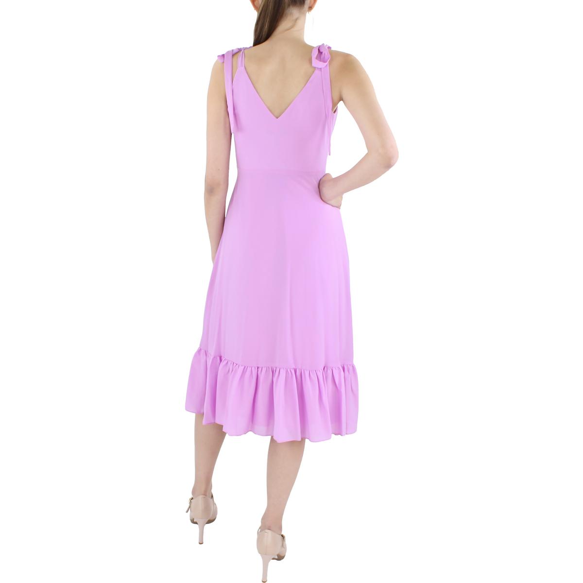 Feel effortlessly romantic in this ruffled tie sleeve midi dress by Aidan Mattox. Made with 100% polyester. This dress is crafted with a stunning hue. ruffled hem. and V-Neck construction. It’s A-Line construction slims the figure and offers day to night comfort. It’s graceful design will make it perfect for daytime or evening occasions. Tie sleeves. Concealed side zipper closure. This dress is guaranteed authentic.