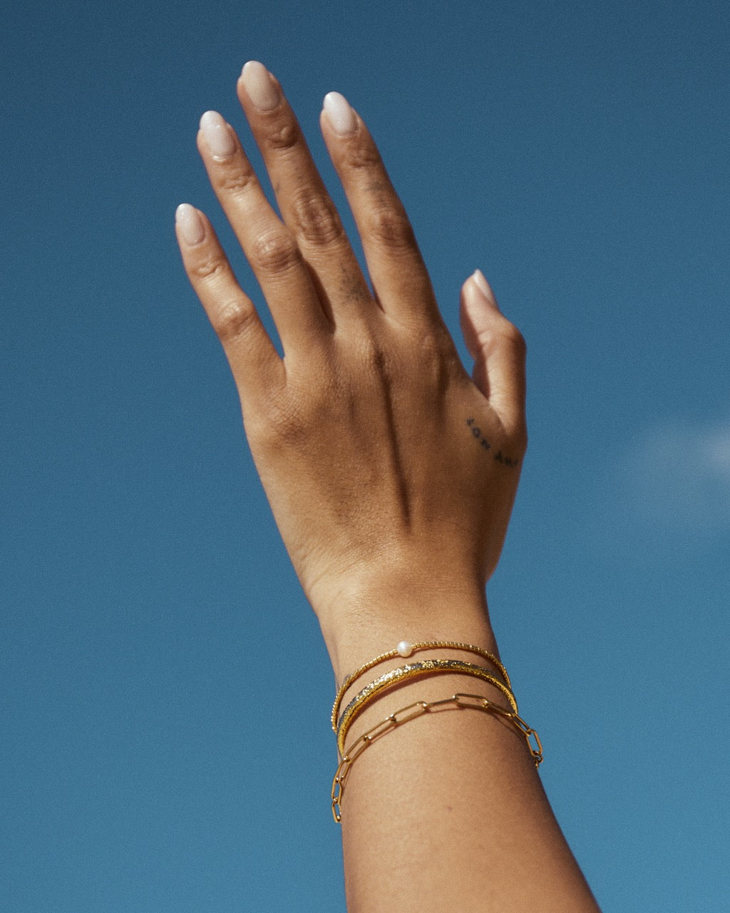 Effortless golden pearl style starts with the stunning River Bracelet. Featuring a lustrous pearl on an adjustable cotton cord, it’s the perfect finishing touch to your beach look, channelling laid-back elegance with a hint of mermaid magic.